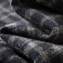 - Classic plaid pattern with natural wooden button accents