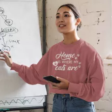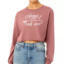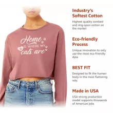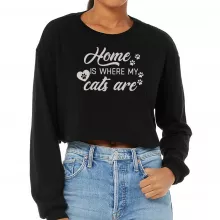 Home Is Where My Cats Are Cropped Long Sleeve Sweatshirt – Cat Lover Women’s Crop Top – Funny Pet Long Sleeves Pullover