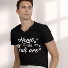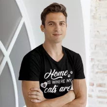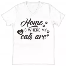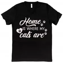 Home Is Where My Cats Are V-Neck T-Shirt – Funny Pet Basic T-Shirt – Cat Lover Tee