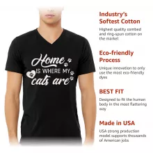 Home Is Where My Cats Are V-Neck T-Shirt is proudly made with 7x less water than average manufacturers, in recycle-friendly facilities that also guarantee zero sweatshop conditions