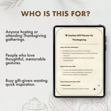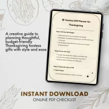 Bring joy, gratitude, and creativity to your Thanksgiving celebrations. Download the Hostess Gift Planner for Thanksgiving today and start planning gifts that your hosts will truly cherish. Perfect for anyone looking to make this holiday season more meaningful, organized, and effortlessly elegant.