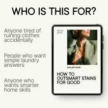 Stains don’t have to ruin your favorite clothes—or your mood. How to Outsmart Stains for Good is a practical, easy-to-follow digital guide designed to help you understand stains at a deeper level and remove them the right way the first time. Instead of guessing, scrubbing harder, or making stains worse, this guide teaches you how to think strategically about fabric care, timing, and treatment. Whether it’s coffee on a white shirt or an unknown mystery stain, you’ll finally know exactly what to do—and what to avoid.
