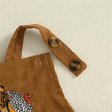 Make your little one the star of the Thanksgiving season with our Infant Thanksgiving Corduroy Overalls. Thoughtfully designed for baby boys and girls, this adorable sleeveless romper brings comfort, cuteness, and festive charm together in one cozy outfit. Crafted from soft, high-quality corduroy and detailed with a sweet turkey embroidery, it’s the perfect choice for holiday gatherings, family photos, and cozy fall days.