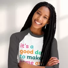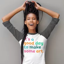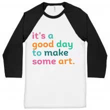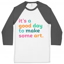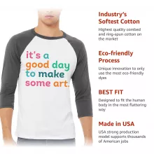 It’s A Good Day To Make Art Baseball T-Shirt is proudly made with 7x less water than average manufacturers, in recycle-friendly facilities that also guarantee zero sweatshop conditions. Artist 3/4 Sleeve is designed and printed in California.
