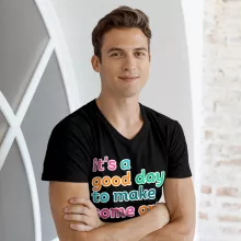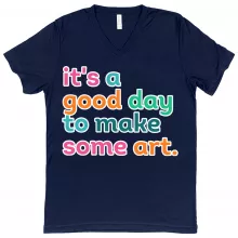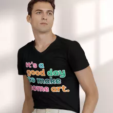 It’s A Good Day To Make Art V-Neck T-Shirt is proudly made with 7x less water than average manufacturers, in recycle-friendly facilities that also guarantee zero sweatshop conditions