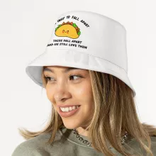This fascinating and classic Bucket Hat is the perfect bucket hat for anywhere you go with outdoor activities. It’s Okay To Fall Apart Bucket Hat combines both colorful styles to turn your head and comfort for your all-day wear. You can use it for your usual day-to-day activities. Funny Tacos Trendy Hat is designed and printed in California.