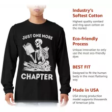 Just One More Chapter Long Sleeve T-Shirt is proudly made with 7x less water than average manufacturers, in recycle-friendly facilities that also guarantee zero sweatshop conditions. Book Club T-Shirt is designed and printed in California.