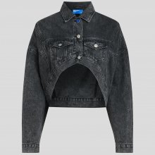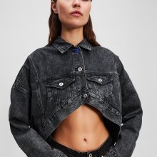 This isn’t your average denim blazer. The oversized fit delivers that effortlessly cool, off-duty model vibe, while the dramatic cutaway front sets it apart with a sculptural edge. Branded shank buttons and patch pockets at the chest add authentic Karl Lagerfeld detailing. A leather logo patch on the back hem and signature blue shank button at the collar and back adjuster tabs make sure every detail is finished with iconic style.