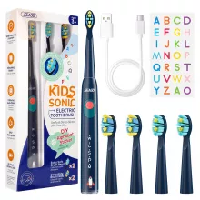 This toothbrush brings together everything young brushers need—smooth sonic cleaning, easy-to-use controls, and a playful customization option using letter stickers. It offers 5 brushing modes to suit different needs, from gentle daily cleaning to deeper polishing. Delivering between 30,000 and 50,000 movements per minute, it provides a thorough clean while remaining soft and safe for sensitive gums. The rechargeable design ensures long-term use, and each brush includes multiple replacement heads made with durable Dupont nylon.
