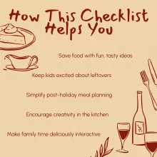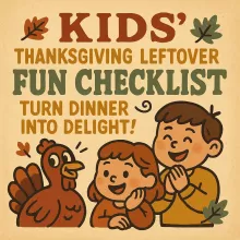 Don’t let your Thanksgiving leftovers sit forgotten in the fridge! The Kids’ Thanksgiving Leftover Fun Checklist: Turn Dinner into Delight! is your go-to digital guide for transforming turkey, mashed potatoes, cranberry sauce, and stuffing into playful, delicious, and kid-approved creations. Designed with busy families in mind, this printable checklist helps you turn post-holiday cleanup into creative kitchen fun — with easy recipes and interactive ideas that keep little hands happy and tummies full. Perfect for parents looking for leftover Thanksgiving dinner ideas for kids that bring joy back to the table!