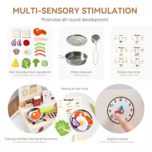 Bring endless creativity to playtime with this charming wooden play kitchen table. Designed to spark imagination, encourage social interaction, and help kids learn through role-play, this delightful cooking set turns any room into a world of pretend culinary fun. Whether for holiday parties, family gatherings, or everyday play, it creates memorable moments that kids and parents will love.