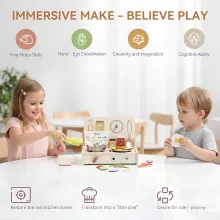 Give your child a toy that combines fun, learning, and creativity in one delightful set. With its engaging design and educational value, this multifunctional wooden play kitchen table is the perfect gift to brighten any celebration. Bring home this wonderful pretend-play kitchen and let imagination take the lead!