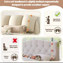 - Overstuffed padded headboard: Cushioned for superior back support while sitting or lounging