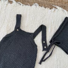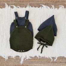 Dress your baby boy in comfort and charm with this sweet knit romper and matching hat set. Designed in a modern Japan-Korean inspired style, this outfit blends soft textures, clean lines, and irresistible pom-pom details that make your little one stand out effortlessly. Its cozy knit weave provides gentle warmth during cool days, while the sleeveless suspender-style silhouette keeps your baby comfortable and free to move. Whether for daily wear, photos, family outings, or special moments, this romper is the perfect blend of practicality and cuteness.