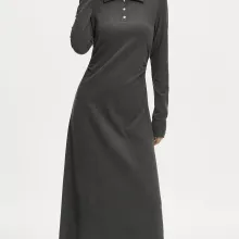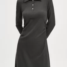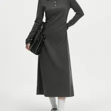 • Design: The dress features a classic turn-down collar with stylish button details, adding an elegant touch to the overall design.