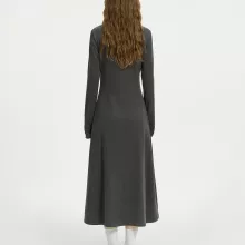 The rich polyester fabric gives a slight stretch, ensuring you feel confident and free all day. Plus, its durable construction and soft feel against the skin make it an ideal choice for layering with your favorite accessories. The mid-calf length and long sleeves offer the right balance of warmth and fashion, making it a perfect staple for your wardrobe.