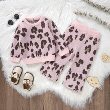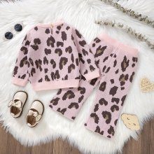 Knitted Baby Girl Leopard Sweater & Pants Set – Stylish 2PCS Outfit