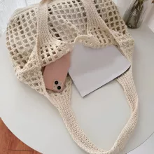 This crochet shoulder bag is perfect for spring and summer outings. Take it along to the beach, on shopping trips, or while strolling through town. Its flexible structure and minimalist design make it ideal for laid-back days when you want something stylish yet easy to carry. Pair it with a maxi dress, denim shorts, or your favorite casual look to complete your outfit with a soft, feminine touch.