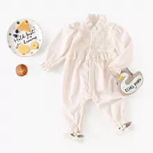 This charming baby romper is designed to keep little ones cozy, stylish, and comfortable all season long. Made from soft vintage-style corduroy, it offers a gentle warm touch that’s perfect for cooler days. The delicate lace floral details and ruffled accents bring a sweet, classic look that makes this one-piece stand out. Whether your baby is playing at home, visiting family, or enjoying a day out, this romper adds a touch of elegance to any moment.