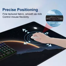 Enhance your desk aesthetics with an eye-catching space-themed design. Whether you’re building a futuristic gaming setup or want to add a touch of personality to your workspace, this mat brings a unique and visually appealing touch.