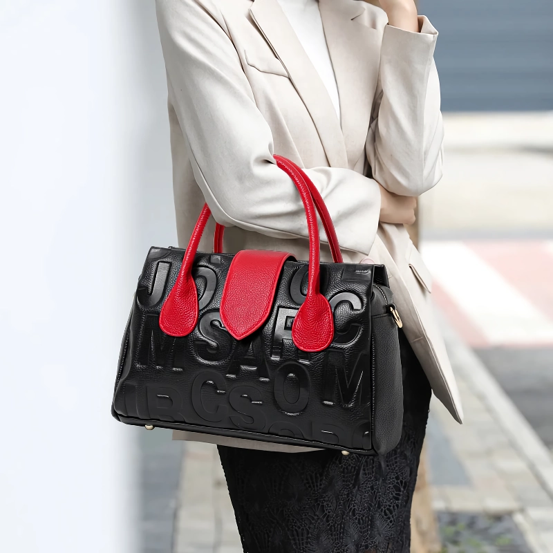 • Soft split leather main body with embossed texture
