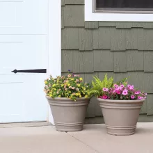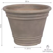 Enhance your garden, patio, or indoor space with this large polyresin plant pot, designed to provide ample room for your favorite plants and flowers. With a generous 20-inch diameter and a height of nearly 15 inches, this planter offers plenty of space for roots to grow strong and healthy. Its lightweight design makes it easy to move around, while the elegant hand-painted finish adds a touch of classic style to any setting.