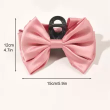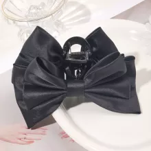 Crafted with a strong plastic claw and topped with a luxurious satin bow, this hair clip is the ideal balance between durability and elegance. The silky-smooth satin bows are securely attached on both sides, giving your hairstyle a polished and refined finish from every angle. With four stunning solid colors – classic black, bold red, soft pink, and rich green – you can mix and match with your wardrobe effortlessly.