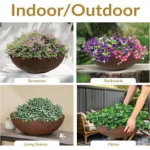 Crafted from durable polyresin, these planters resist cracking even in cold weather and maintain their vibrant look thanks to a UV-resistant, hand-painted finish. Each bowl measures 20.75 inches in diameter and stands 7 inches tall, offering a generous soil capacity of 3.7 gallons. Their lightweight design makes them easy to move and rearrange as your garden evolves.