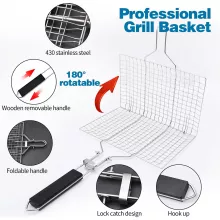 - Secure Mesh Basket: Prevents food from slipping or falling into the grill, ensuring mess-free cooking.