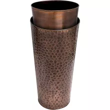 Add a striking touch of sophistication to your home or garden with this large tall copper planter pot. Expertly handcrafted from stainless steel with a hand-hammered antique copper finish, each planter is a unique work of art—no two pieces are alike. Standing 28 inches tall and 14 inches wide at the top, this planter beautifully blends the warmth of copper tones with durable construction, making it a stunning focal point for any indoor or outdoor space.