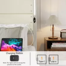 - Built-in Charging Station: Stay connected with easy-access USB and Type-C ports on the headboard