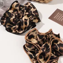 after trying many hair ties for my thick hair, this scrunchie stands out for its combination of softness, strength, and attractive design. the fabric is incredibly gentle on my scalp and strands, preventing breakage and discomfort even after hours of wear. the elastic stretches easily to accommodate thick ponytails and buns without feeling too tight or slipping loose during the day. what i love most is that it doesn’t leave dents or kinks in my hair, allowing me to wear different styles throughout the day without worrying about marks. the leopard print adds a bold and fashionable flair that elevates even simple hairstyles. the scrunchie’s durability is impressive—it maintains its shape and elasticity after repeated use and washing. it has become a staple in my hair accessory collection and is perfect for workouts, casual days, or dressing up.