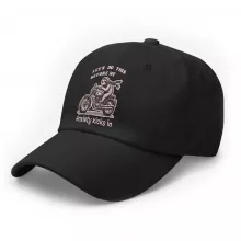 The cap features a self-fabric hideaway strap with antique brass buckle and grommet so it can be adjusted for the perfect fit
