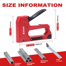This tool features a lightweight ABS body that reduces hand fatigue, paired with a textured, ergonomically curved handle for a secure, comfortable grip during extended use. Its internal metal structure delivers a powerful shot, making it ideal for attaching medium-strength materials with confidence. The bottom-loading magazine makes reloading simple and frustration-free, while the built-in handle lock keeps the stapler compact for safe storage.