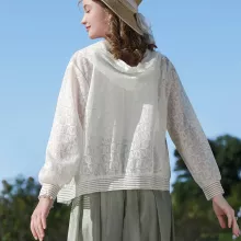 Featuring a full-zip front and a relaxed, wide-waisted fit, this jacket keeps things cool and cozy without compromising on style. The hooded design adds a laid-back vibe, while the intricate lace splicing and geometric patterns bring a romantic, graceful feel to your everyday look. It’s everything you want in a summer layer — light, lovely, and completely wearable.