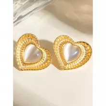 Perfect for weddings, parties, or everyday elegance, these 18K Gold Plated Stainless Steel Love Heart and White Cat Opal Earrings are a must-have for any jewelry lover. Embrace the blend of classic design and modern durability with these charming, waterproof earrings. Add them to your collection or gift them to someone special, and experience the perfect balance of style and sophistication.