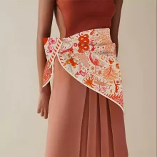 Unlike mass-produced scarves, this piece showcases artisan-level craftsmanship with its hand-curled finish and intricate print. The soft yet durable silk drapes beautifully and feels feather-light against the skin. It transitions effortlessly from day to night, giving you the flexibility to style it for casual outings, formal events, or travel.