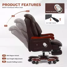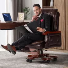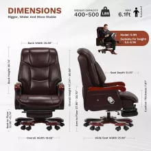 Designed to support your daily grind, this chair is more than just a place to sit. It’s engineered with premium full-grain cowhide leather, plush high-density foam, and an ergonomically contoured backrest for maximum support and breathability. It offers a reclining backrest that adjusts from 90° to 155°, a retractable padded footrest, and a built-in massage system with 9 vibration points to ease tension in your back, shoulders, and thighs.