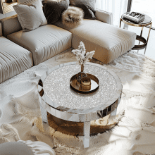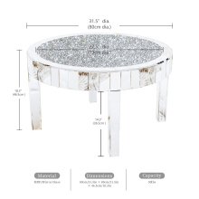 This mirrored coffee table is built using 60% durable MDF board and 40% high-quality glass, ensuring both strength and elegance. Measuring 31.5 inches in diameter and 18.3 inches in height, it provides ample surface space for drinks, books, décor, or your favorite accent pieces. With a solid weight capacity of up to 110 pounds, it offers dependable support for everyday use.