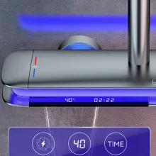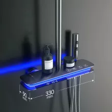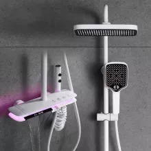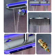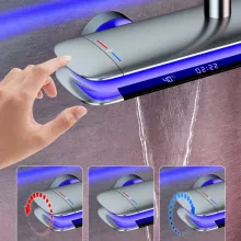 Experience a spa-like shower in the comfort of your own home. The 360° ambient light enhances your shower experience by creating a calming environment, perfect for unwinding after a long day. The thermostatic faucet ensures that you always have the perfect water temperature, eliminating the risk of sudden temperature changes. With high-quality materials and a stylish finish, this shower system not only looks stunning but also promises durability and longevity.