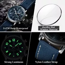 Designed for the modern man who demands both performance and style, this Luxury Waterproof Chronograph Sports Watch is built to impress. Whether you’re heading into the great outdoors or elevating your street style, this timepiece delivers unmatched durability and a refined, masculine look. With a striking round dial, luminous hands, and a combination of nylon and leather strap, this watch is the perfect blend of function and fashion.