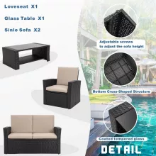 Aside from its robust build and elegant design, this sofa set stands out with its modular setup, allowing you to arrange it as you see fit, adapting to any space or occasion. With easy-to-follow installation instructions, you’ll be ready to enjoy your outdoor sanctuary in no time.
