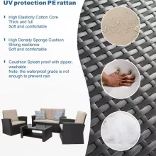 Well, let me tell you about this fantastic buy I made recently. You know what's the absolute best part? There's no rusting fading at all! Can you believe it? Even with all those crazy weather changes we've been having. Now, I'm talking about a 4-piece sofa set here. And trust me when I say this - it has just blown my mind and exceeded every single expectation that I had Picture this: Rain pouring down one day, scorch sun the next; but guess what remains unaffected through it all? Yeah, you guessed right - our beloved sofa set! You'd think something kept outdoors would start showing signs of wear and tear pretty soon, right? But not this one! No sir! It stands tall against wind and rain like some sort of superhero furniture piece. Not even a hint of rust in sight! And don't even get me started on fading because there is none whatsoever! The colors are as vibrant today as they were on the first day when we unboxed them. Talk about holding up well under pressure! This isn't just any regular old 4-piece outdoor sofa set either – oh no – it’s so much more than that! It's an investment into comfort and style without compromising durability. So yeah folks, if you're in the market for new patio furniture that can stand its ground against Mother Nature while still looking fly as ever, then look no further than this gem right here because trust me when I say - it won’t disappoint!