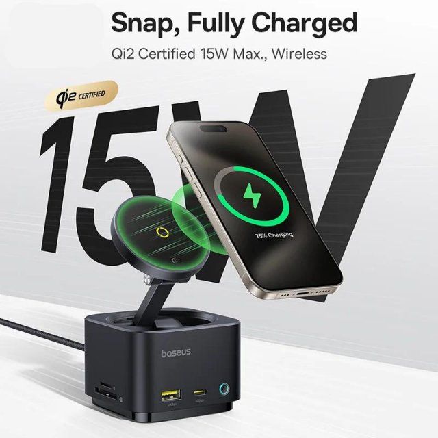 Say goodbye to tangled cables and limited ports with this all-in-one Magnetic Wireless Charger and 7-in-1 Hub. Designed for the latest iPhone 16, 15, and Pro Max series with MagSafe compatibility, it delivers Qi2-certified 15W wireless fast charging while expanding your device’s connectivity. Whether you’re working, streaming, or charging multiple devices at once, this compact hub keeps everything powered and organized.