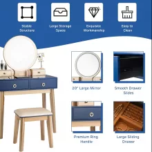 Ready to elevate your beauty corner? Add this stunning navy blue vanity set to your space today and experience the perfect combination of form and function.