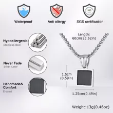 This necklace is more than just jewelry—it’s a symbol of your personality, a reflection of your values, and a versatile companion for any occasion. The black-glued square pendant represents strength and stability, while the hypoallergenic, lead-free material ensures all-day comfort without irritation. Whether it’s a gift for a loved one or a self-treat, this piece carries deeper meaning—representing love, faith, and individuality.