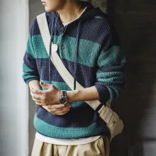 Step up your casual wardrobe with this striped knit hoodie pullover — a stylish blend of classic collegiate vibes and relaxed city-boy flair. With its eye-catching stripes, wooden button detail, and soft knit texture, this loose-fit hoodie brings the perfect balance of laid-back charm and vintage-inspired character. Designed for men who appreciate a timeless look with modern comfort, this pullover is a must-have for transitional seasons and cool weather layering.