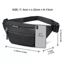 Made from durable Oxford fabric with a smooth texture, the bag is built to withstand daily use while staying lightweight at only 0.2 lb. The adjustable strap (up to 37.4 in) lets you wear it around the waist or across the body for a custom fit. Its compact size of 12.6 × 2 × 5.9 in offers just the right amount of space for your phone, wallet, keys, cash, and small essentials—without feeling bulky. This makes it great for commuting, sports activities, sightseeing, and casual outings.