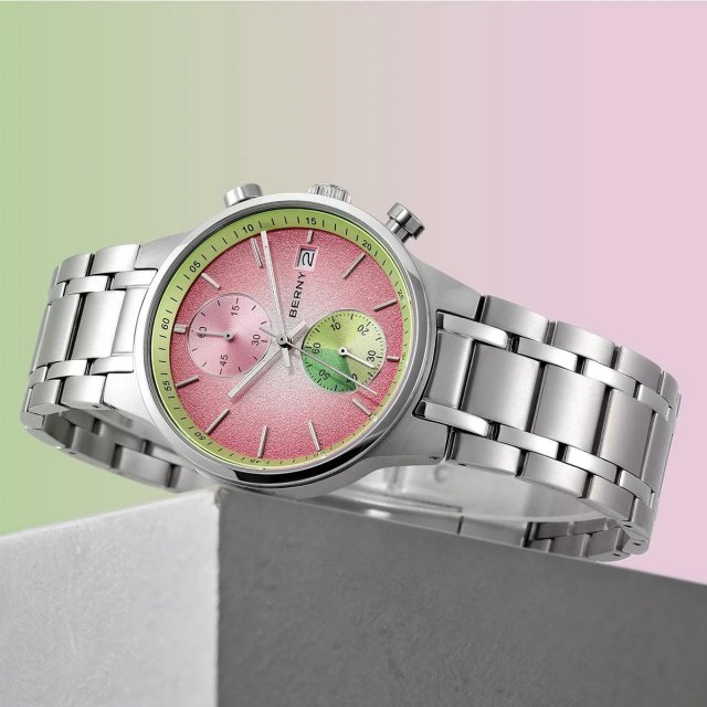 Unlike ordinary watches, this chronograph stands out with its balance of sporty charm and refined sophistication. Its mid-sized case (1.5 inches diameter) ensures a comfortable fit on the wrist, while the folding clasp keeps it secure all day long. The weight feels substantial without being heavy, giving it the premium feel you deserve.