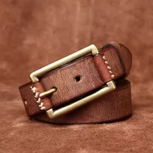 Crafted for men who appreciate quality and attention to detail, the belt features a solid brass buckle that’s both strong and stylish. The buckle’s polished finish adds a bold touch, while the natural grain of the cowskin leather provides an authentic, luxurious feel. Designed with simplicity and strength in mind, this belt is an essential piece in any man’s wardrobe.